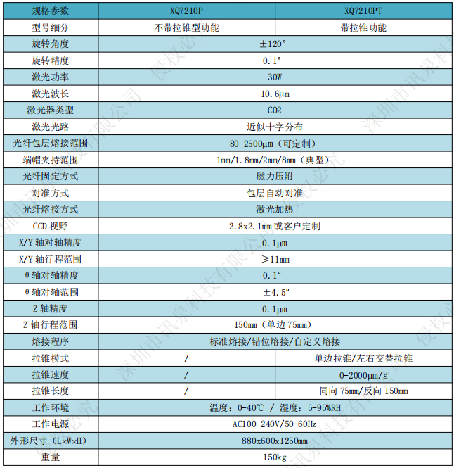 XQ7210P是讯泉科技自主研发的CO2激光为热源的大直径保偏光纤熔接系统。该系统可以快速、精确、稳定的进行80μm-2500μm光纤或玻璃棒熔接处理,主要用于QBH光纤端帽熔接、合束器光纤束熔接、特殊光纤熔接、玻璃管拉锥、光纤烧球、低熔点光纤处理等。它们功能丰富,操作简单,应用灵活。